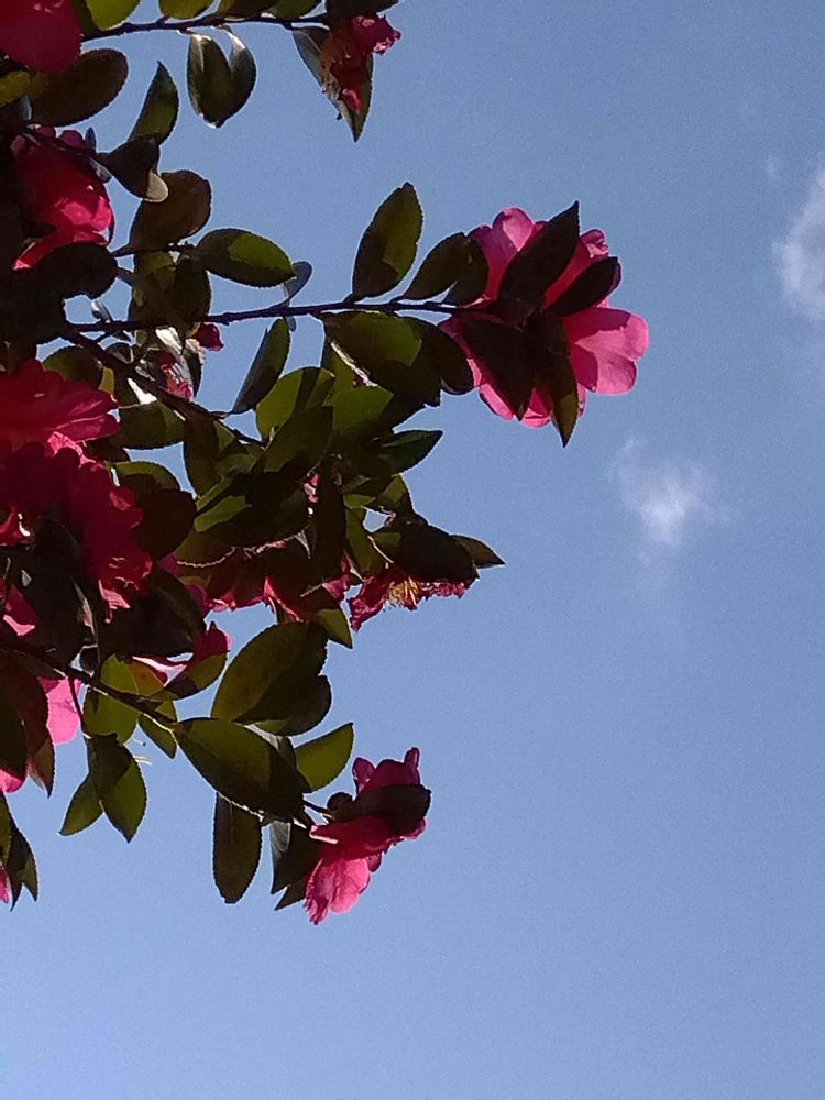 真っ青な空💙に赤い山茶花🌺が映えて、とても綺麗ですね。