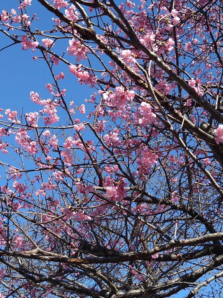毎年近くの神社へ初詣に行く時に咲いている桜です。