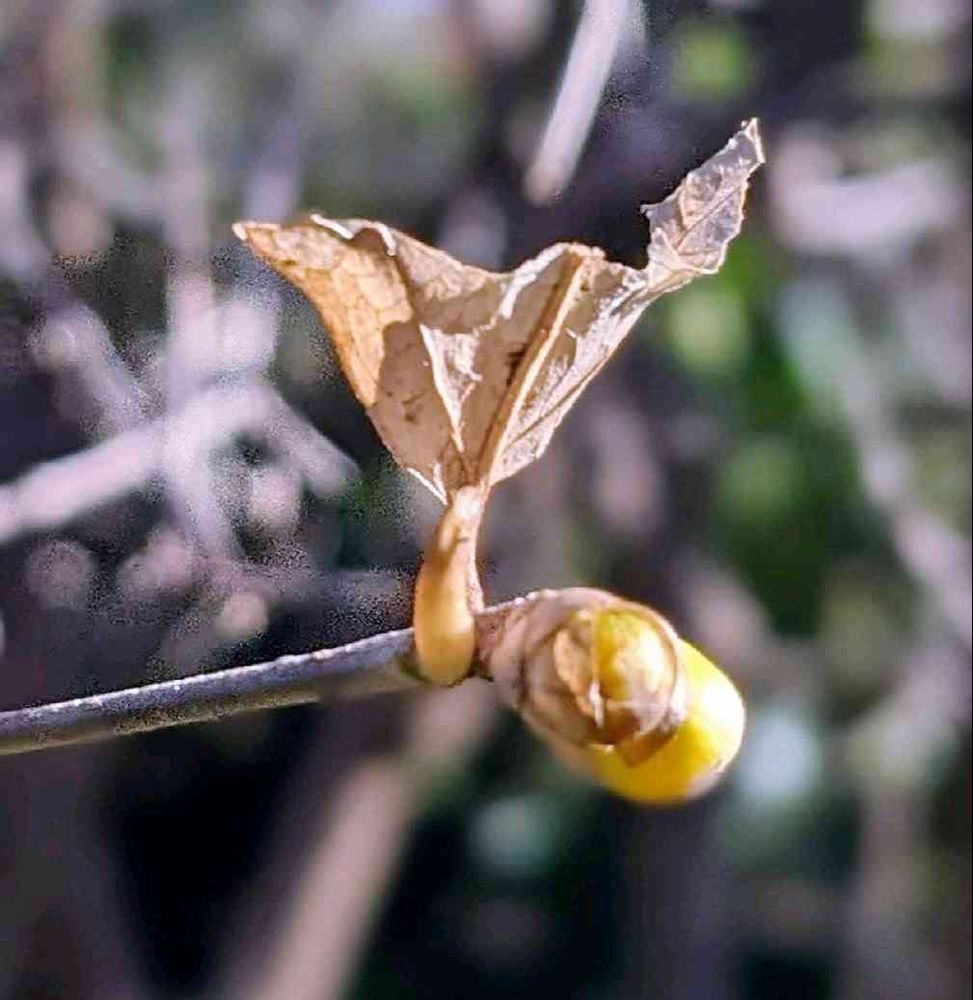昨日アプローチの素心蝋梅の枝の先端に 何だか元気を貰えるような蕾が付いていました