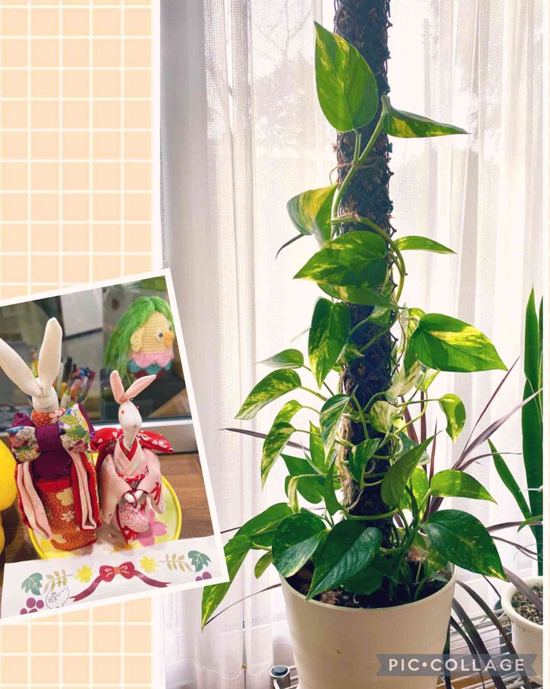 ポトスのタワー仕立て、斑入りだから更に素敵ですね🥰