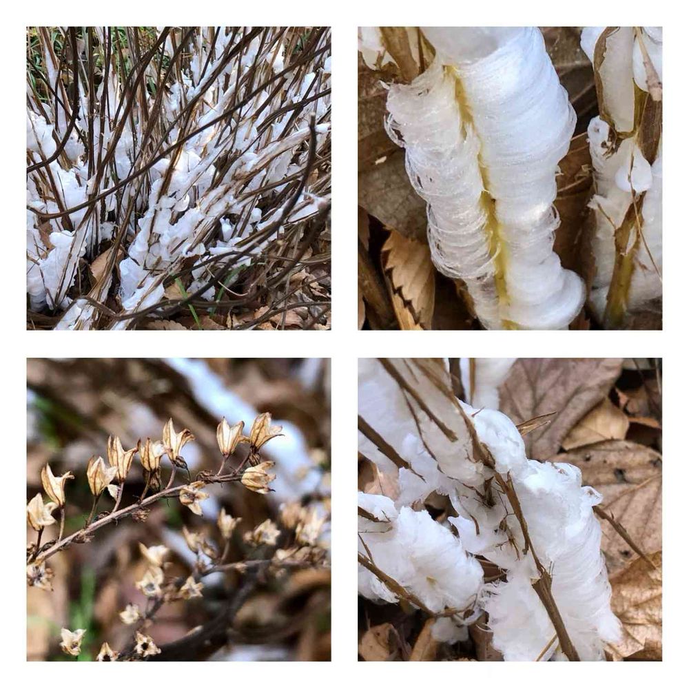 植物のシモバシラの根から吸い上げられた水分が枯れた茎から染み出し、冷たい外気に触れて凍って出来るそうです🧊