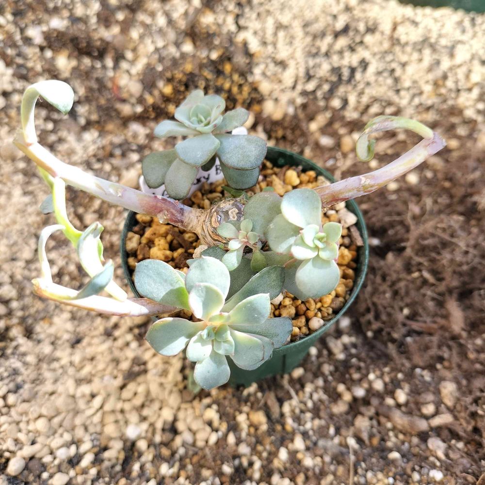 見切り品コーナーから救出した、エケベリアのギャラクシーブルーを挿し木と植え替え同時にしました。復活してくれると良いなー。