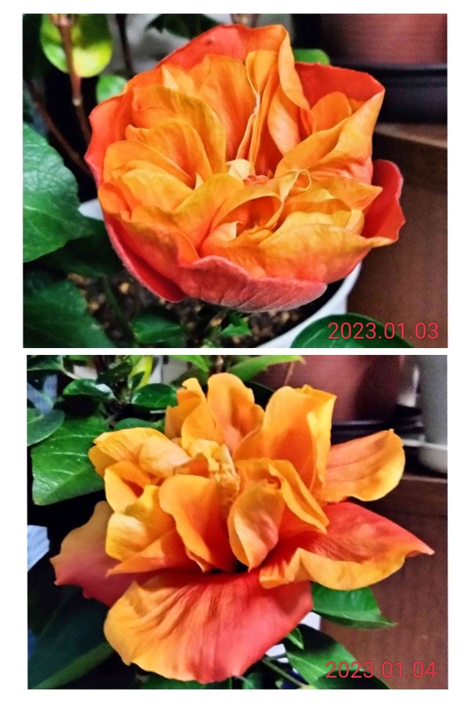 しばらくつぼみで変化なしだったのですが、部屋を暖かくしていたせいか、昨日の夜膨らんできて、今日は花開きました😄🧡✨