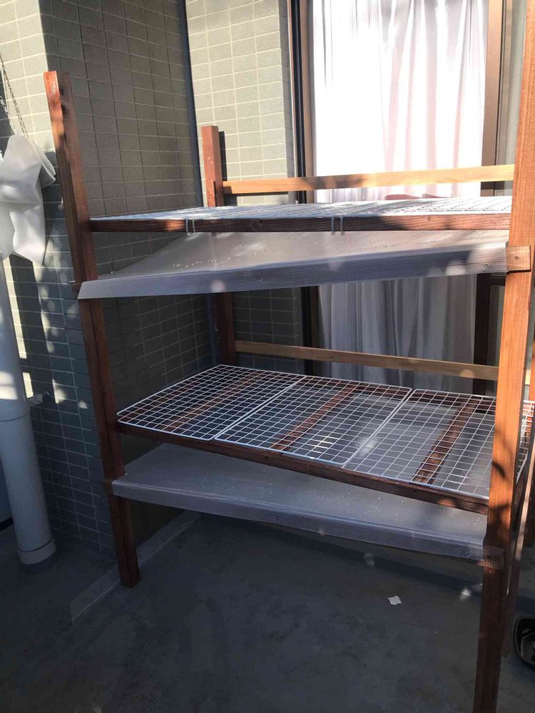 次は室外機の上をカバーして簡易的な多肉棚を作ろうかな。