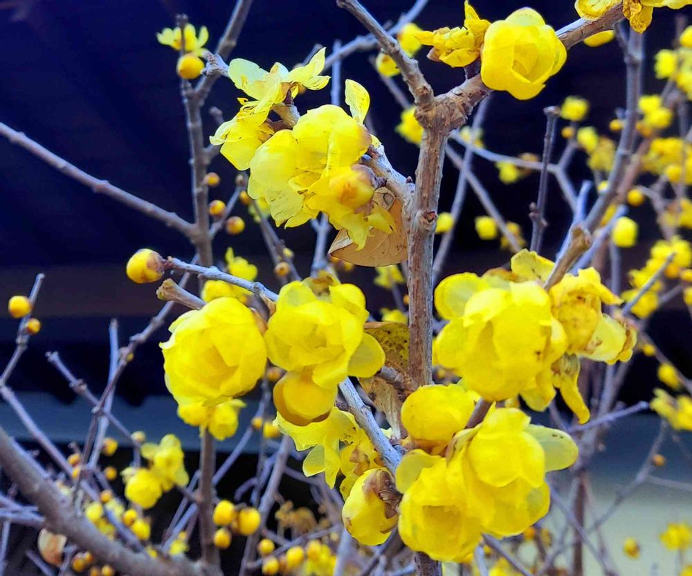 地元のお寺の毎年見ているロウバイ、今年は香りをかぐときに花の中を覗いてみますね、🤔
