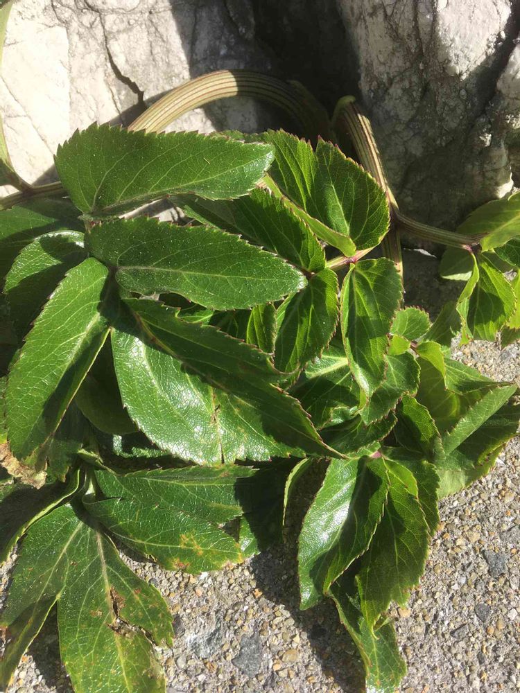 海岸の岩場で岩の隙間から逞しく葉を繁らせている。