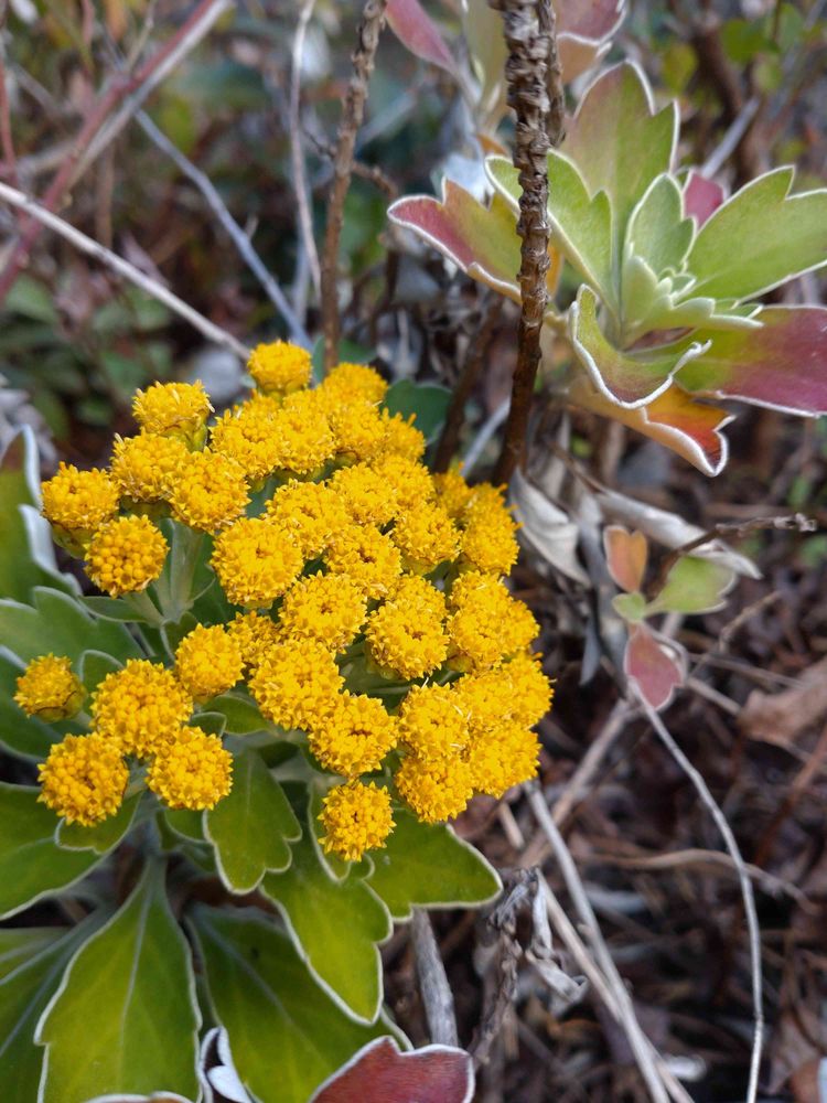 年末のお墓参りをしたとき お寺さんに黄色いイソギクのはなが綺麗に咲いていました💛🌿