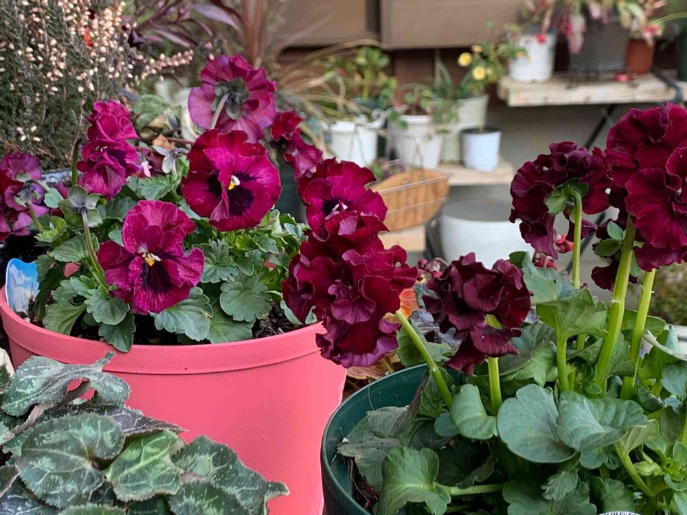 お気に入りのフリルパンジー。ガーデニング作業の休憩スペースに置いて、間近で愛でるのがご褒美です^ ^