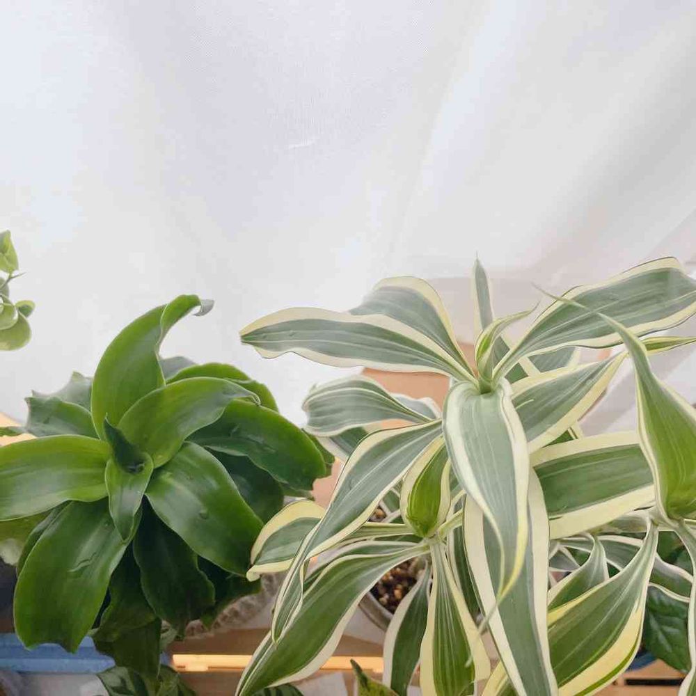ドラセナサンデリアーナ、オソロやーい😍うちの子は花束の飾りモンに入ってた子やから背が高いけど、minちゃん家みたいに葉っぱ盛り沢山ではないかなぁ✨
