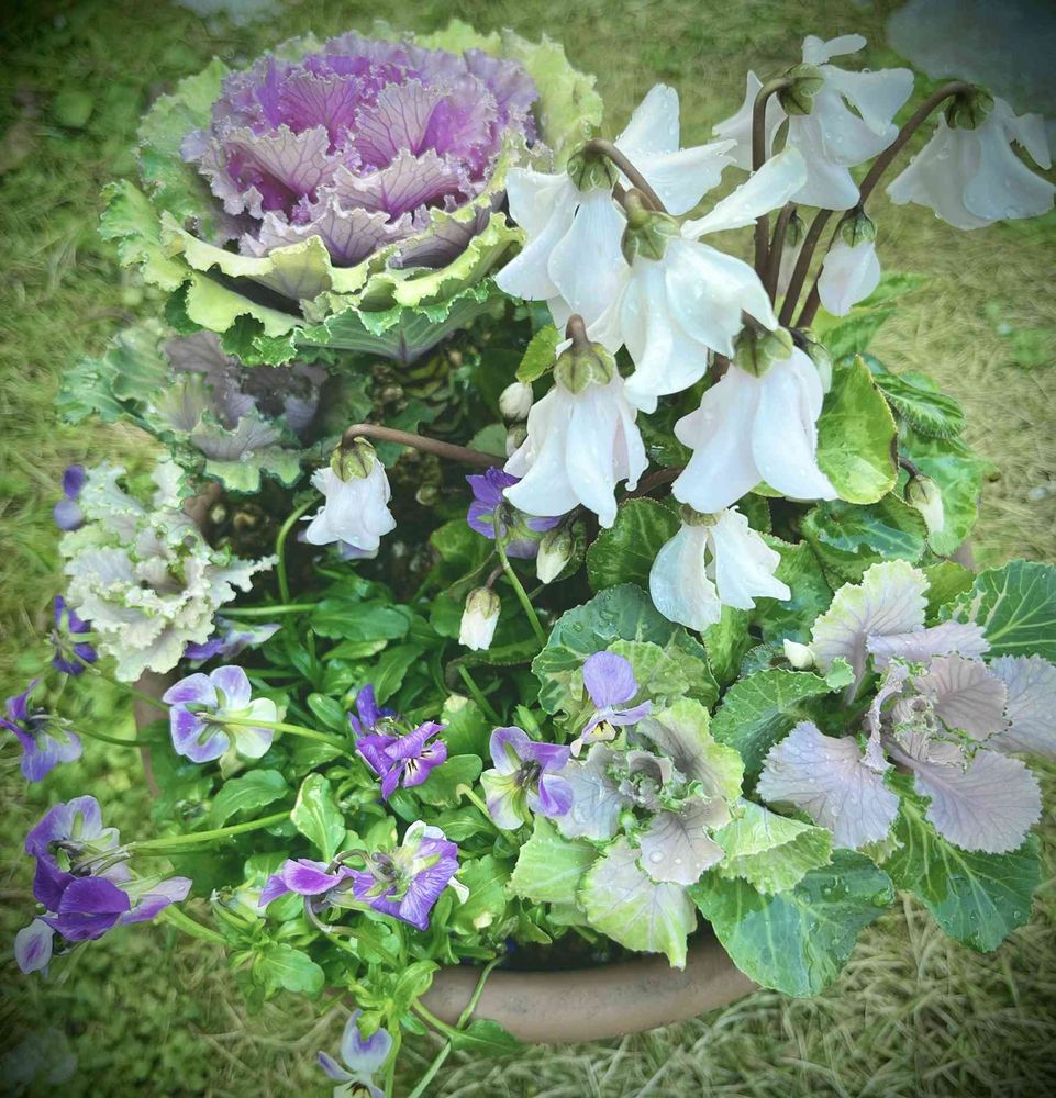年末、福引で貰った葉牡丹の組み合わせに悩み植え込み保留。年始の福箱の苗たちと同居させることにした。
