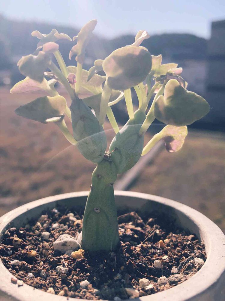 こんにちは。 2022年秋、多肉植物に出合い気ままにベランダで育てています。 家の植物たちの成長の記録として、マイペースに綴っていきます。超照れ屋さんなので、コメントのやりとりはしていません。ごめんなさいね^_^ 最近気付いたのですが、私は葉挿しから育てている子が多いみたいです。 もちろんそうでない子もいるのですが。。。 葉元から、ムニィーっと出て来る姿を見ると愛おしくなります〜🎶 どうやら子育てがしたいみたいです。 花束に憧れているので、出来るだけ沢山の子を育てて盛り盛りにしていきたいです。