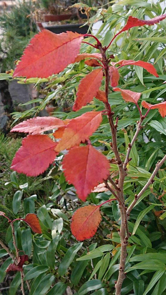 桜の葉っぱでこんなに赤くなったのは、あまり見たことがないです。