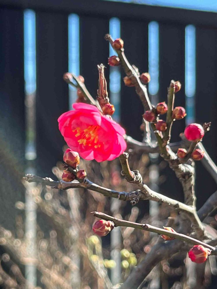 小さな庭,紅梅の花,八重寒紅梅。の投稿画像