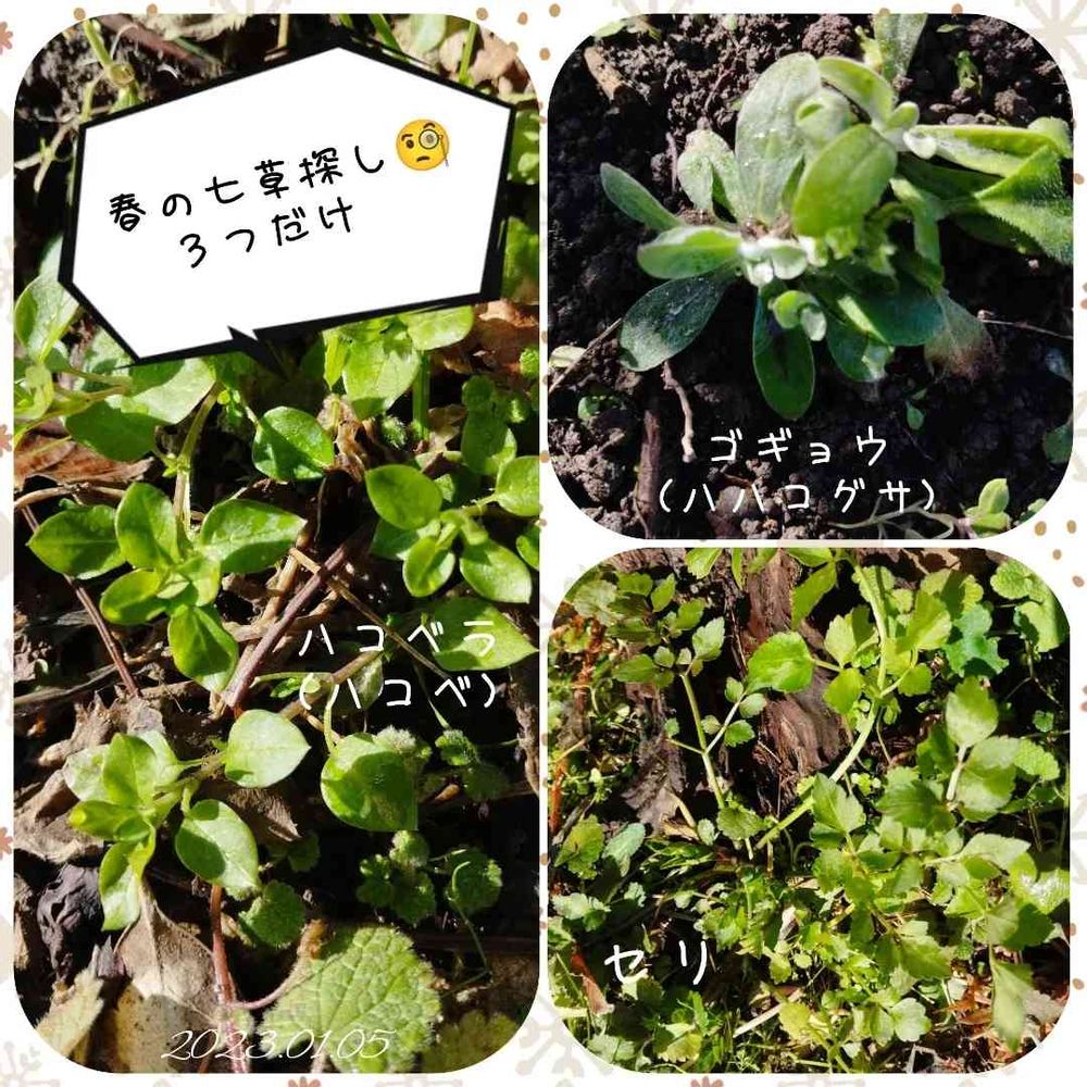 明後日は、見つけた3つに、すずな(蕪)すずしろ(大根)とほうれん草と春菊入れてうちの七草粥にしよう🎶😁
