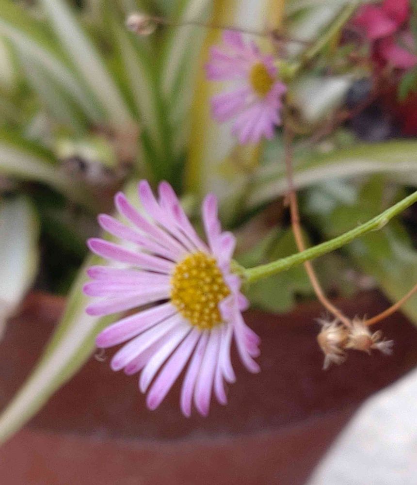 ハルシオンやヒメジョオンと似ていますが 区別する方法は茎が立ち上がらないため草丈が人のくるぶし程度と明らかに低く 紅色っぽいお花が混じって咲いていることだそうです🌱