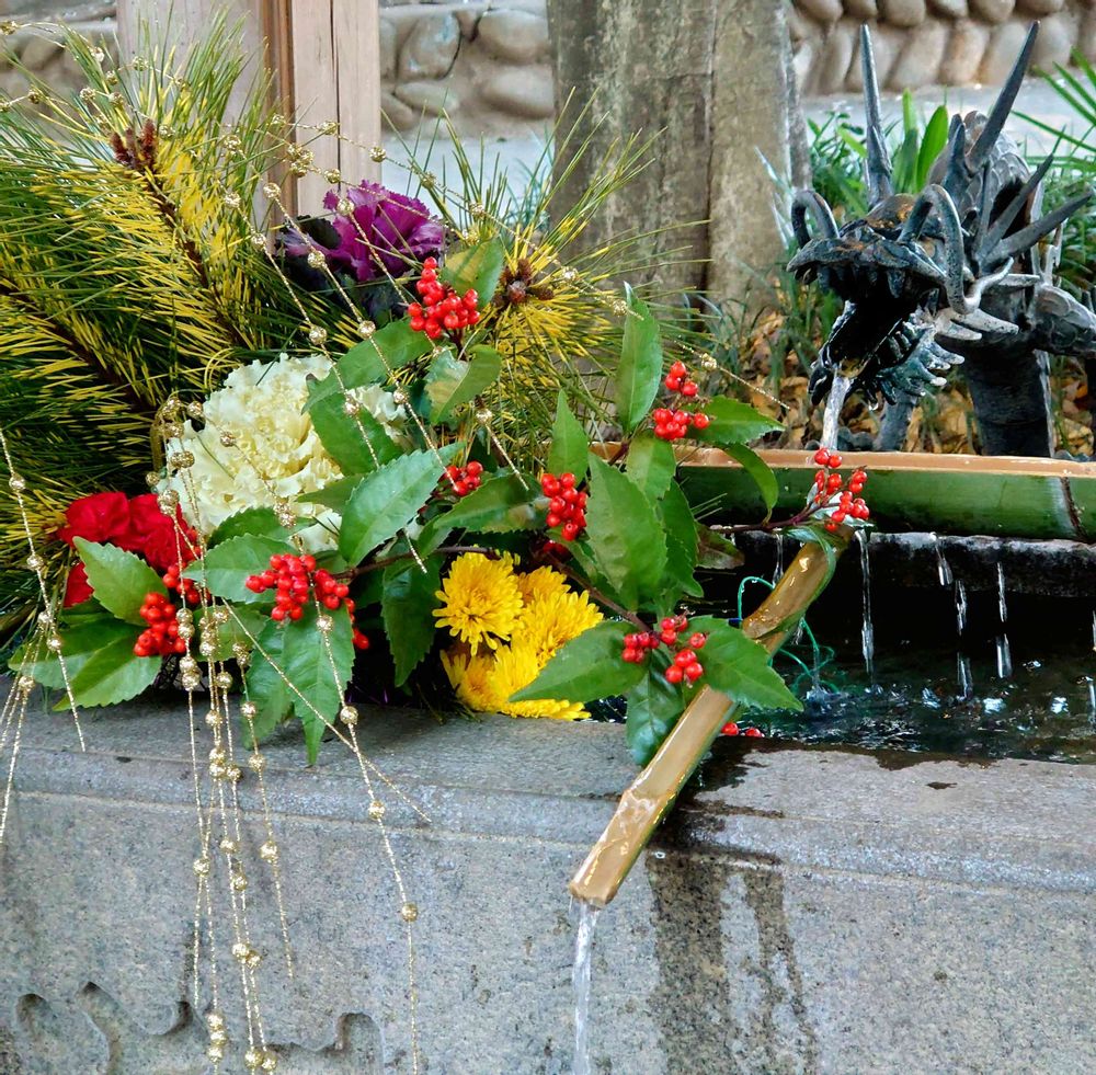 お正月らしいアレンジの生け花風の花手水でしたよ🤗💕
