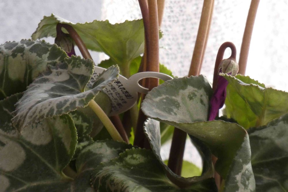 昨年からリビングの窓辺で育てているシクラメンブルージェリーに小さな蕾がふたつ付き始めました。