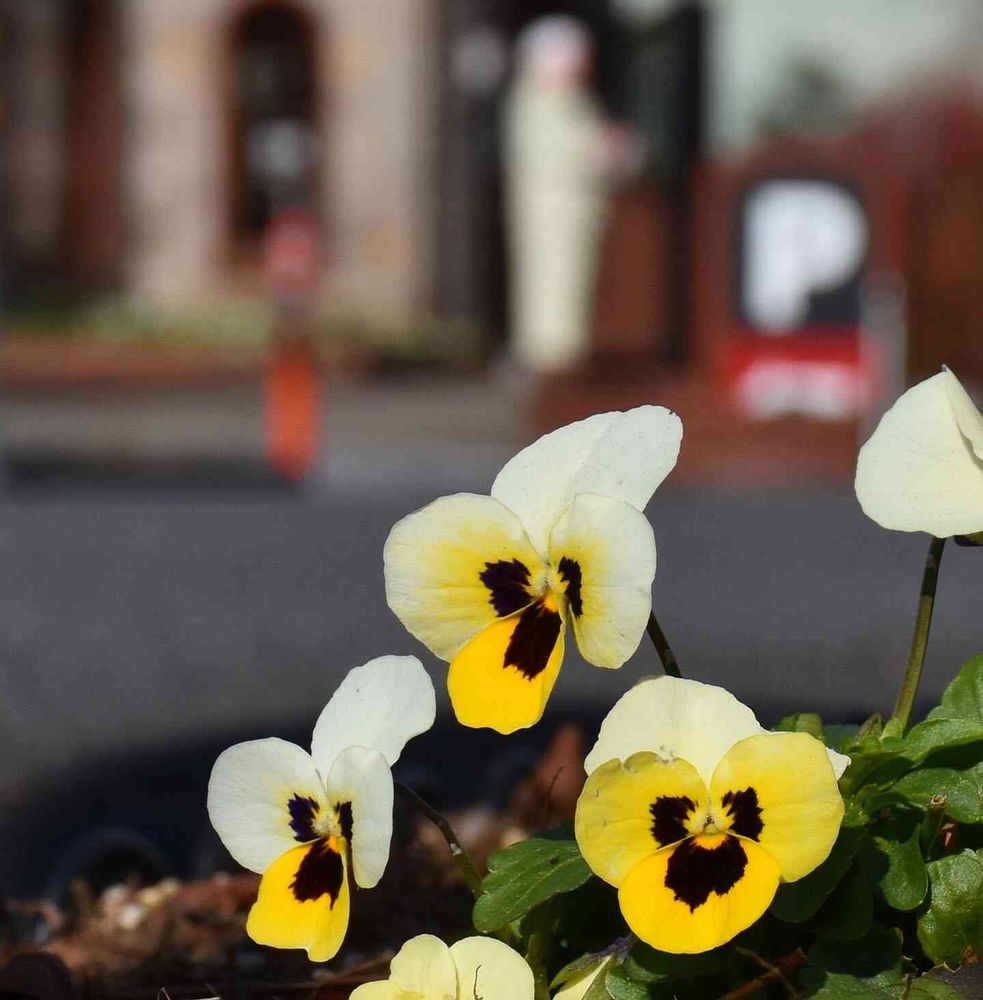 【研究学園の花々】2022年12月28日、ケンタッキーフライドチキン前の歩道花壇に植えたビオラが元気に咲いていました!