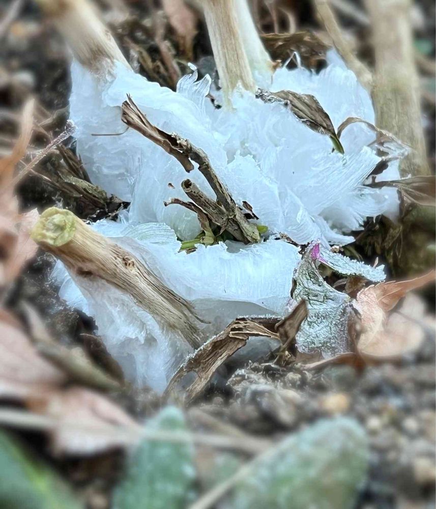 先月中旬過ぎた頃から庭で見られるようになった氷の華ꕤ