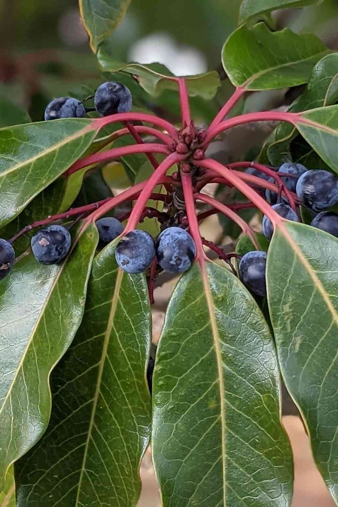 紅い茎の周りに黒い実と葉っぱが取り囲んできれいね。