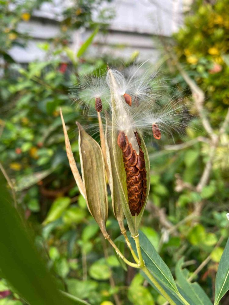 お庭に出てみると、トウワタの綿毛が今にも飛び立とうとスタンバイしてました🌿