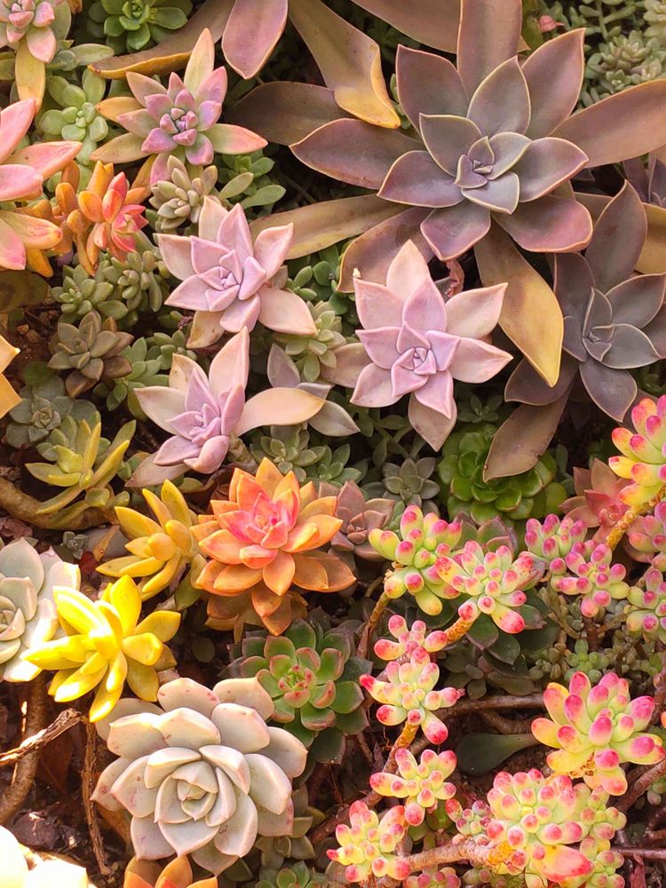 南側花壇の多肉ちゃん達がとてもカラフルになってました😽💗🤍💛🧡💜💚