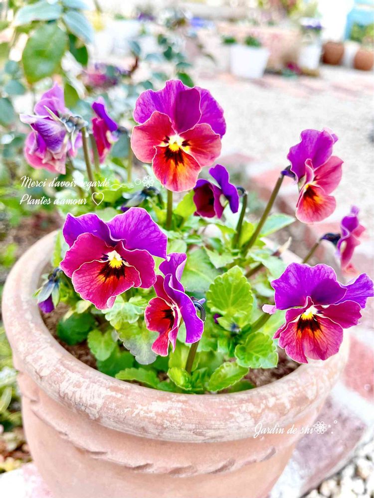 いつもビオラやパンジーはブルー系だけど艶やかな赤系が輝いて見えて😍❤️✨