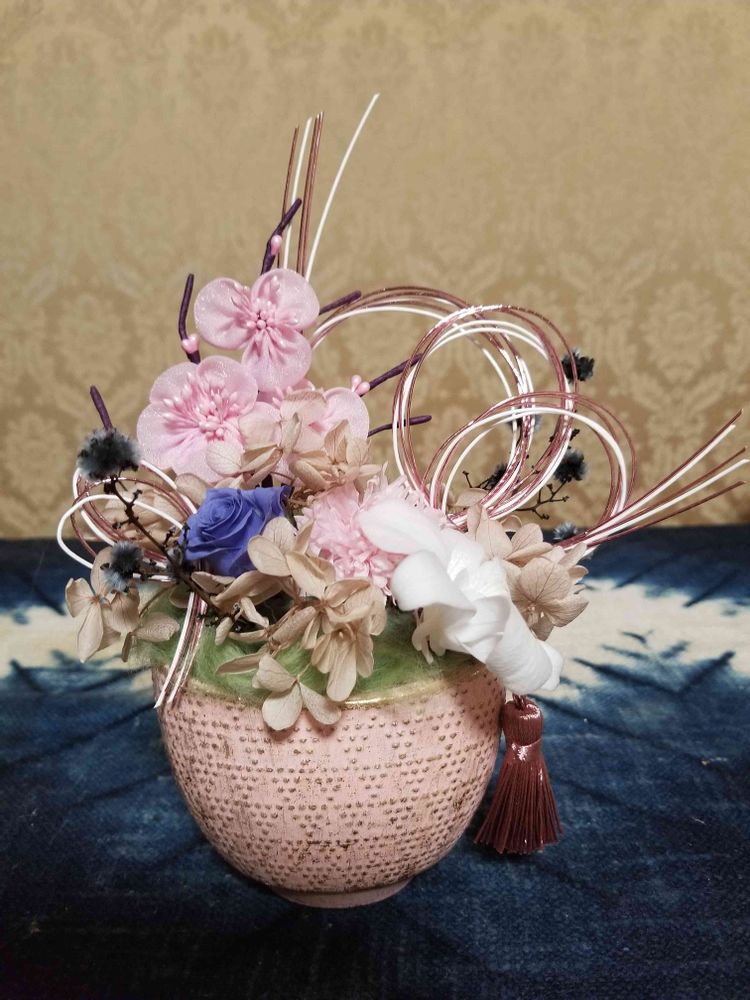 今年初めてのフラワーアレンジメントの教室にて作った作品。