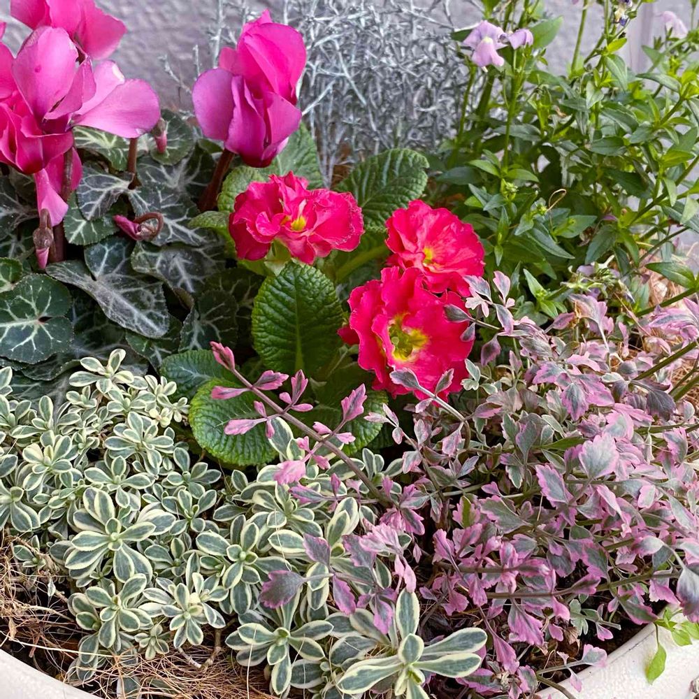 黄色い彩りも素敵だけど、この華やぎの寄せ植えにも、楽しい彩りの演出がいっぱい🎵