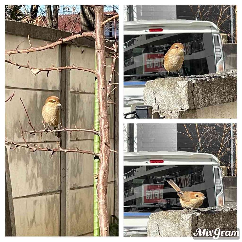 一羽 塀の上にもう一羽 近距離で鳥が撮影できると思ってそーっとスマホを構えてパチリです♪ 次の瞬間北島康介選手の如きスタート姿勢から急降下‼︎腐葉土の中から何か虫をGetして行きました。