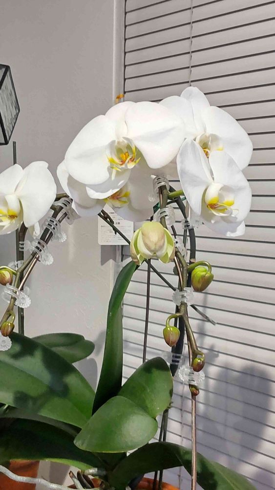 大輪白胡蝶蘭開花が進んでますが花の向きを揃えるためにいつも外向きに置いてます😃だから咲いたのに気付かなかったりする😅