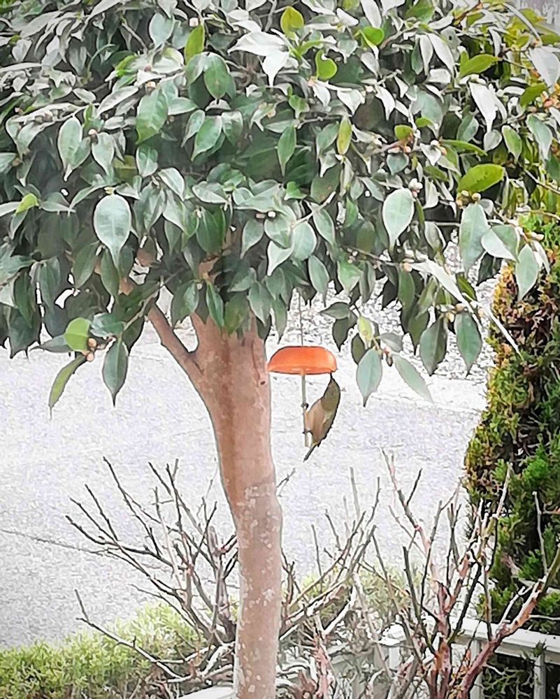 雨や雪に濡れないヒヨドリに狙われにくい😅