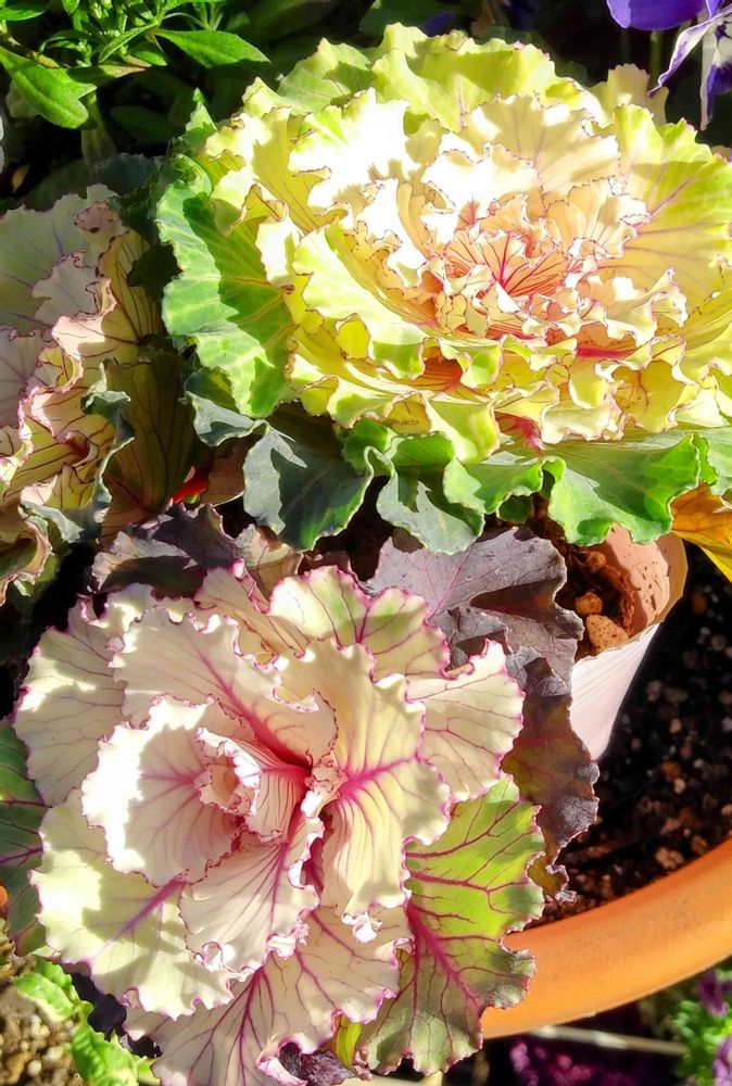 葉牡丹の色合いと葉脈がお花のようでとっても綺麗ですね😊