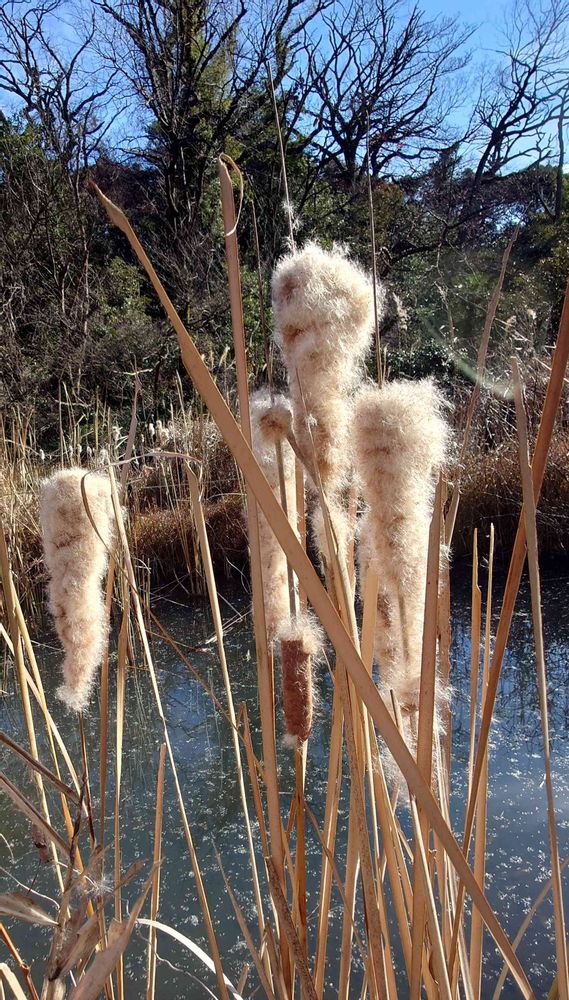 この池も2月は薄い氷で覆われますが、ソーセージの棒にしがみついている綿毛も何本か見掛けられます😆
