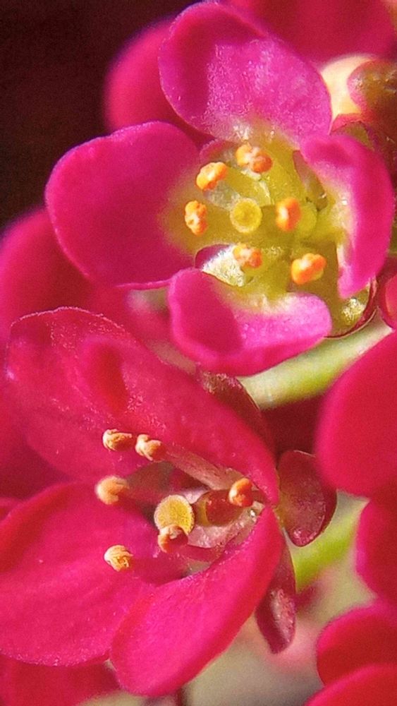 暖かい陽射しに映える赤いアリッサムの花🌼 風に揺れなかなか納まりません でもなんとかかわいい💠顔見せてくれました🤗