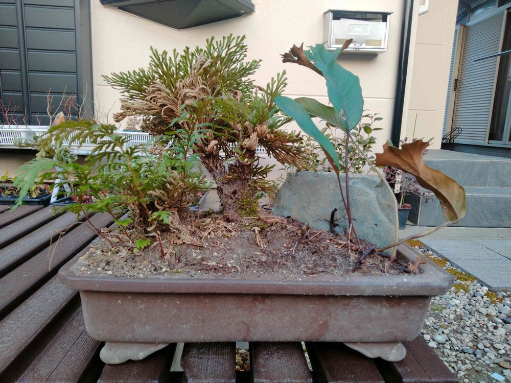 先日、掲載されたこの盆栽の裏側がどのように作られているのか知りたくて、ぶんぶんさんにリクエストしました。一ツ葉の配置やイワシデの岩への張り具合がよく分かり、勉強になりました。岩の形や配置もよく分かり興味深く思いました❣️
