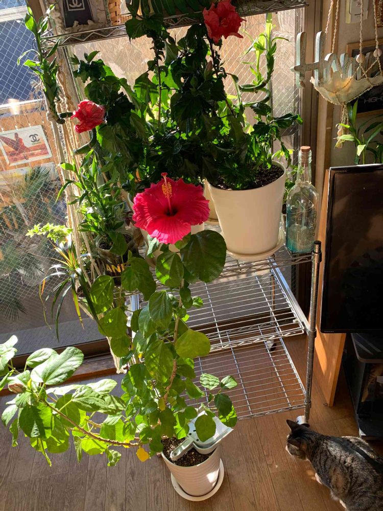 #ハイビスカス#ハイビスカスサマーブリーズ#開花#ネコ#リビング#いい天気