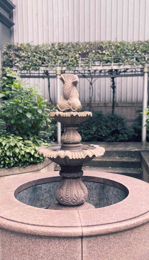 噴水?バードバス?は⛲️水は出ていませんがお魚🐟がモチーフでどこか異国情緒があり素敵です╰(*´︶`*)╯♡