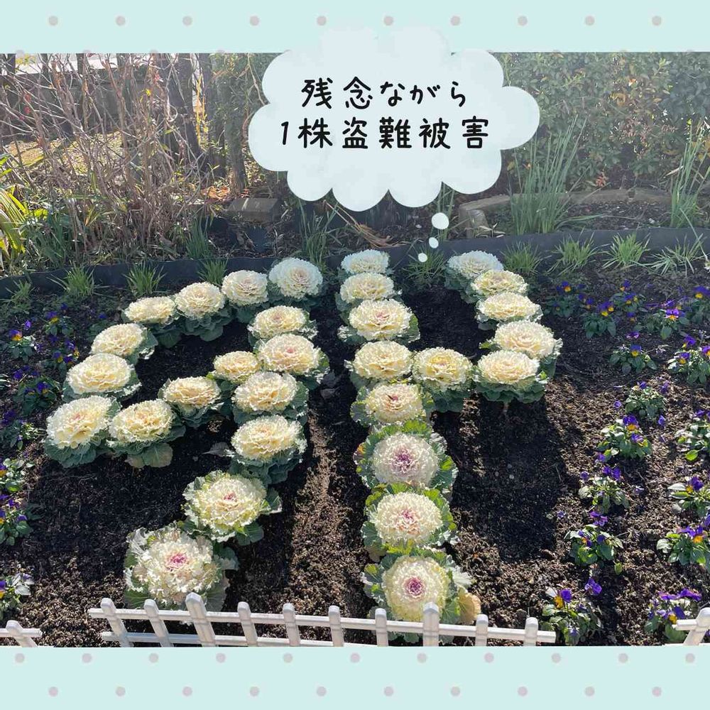 picは参加しているボランティアガーデンのある公園の別のボランティアガーデンです。毎年新年は葉牡丹で干支を表現しますがやはり盗難(白大1株、紫小2株)に遭いました。毎年です😅