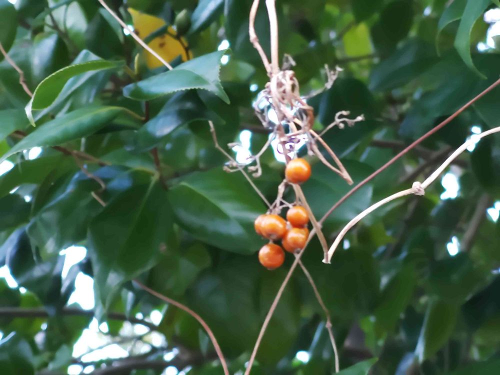 でもヘクソカズラって、花の咲く頃は結構強いツルだけど、実が色付く頃ってソレほど強くもないんだよね。
