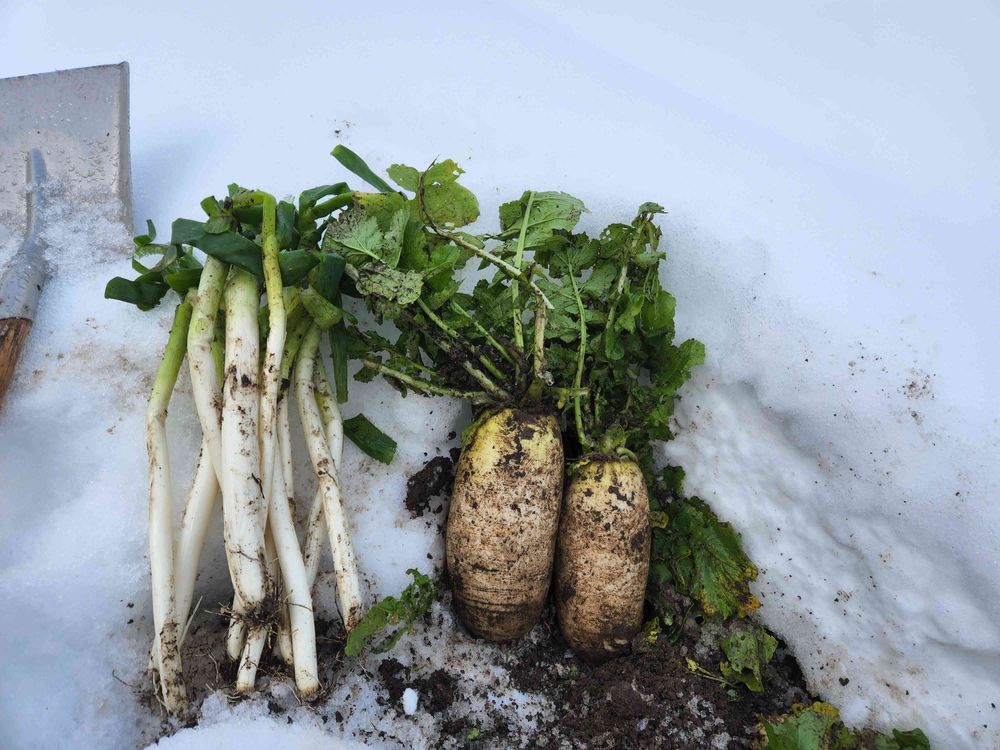 雪の下で美味しそうな野菜がお料理してもらうのを待っているのですね〜♡