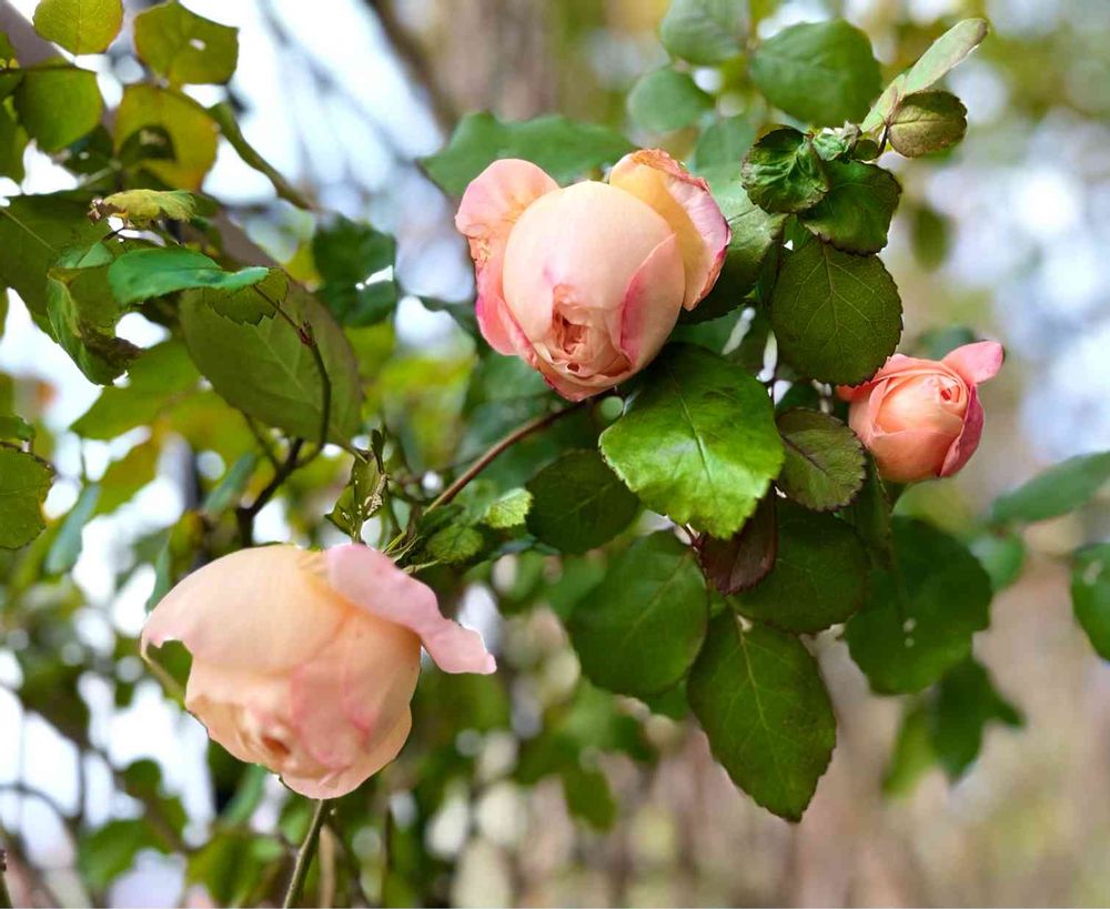 イングリッシュローズのレディ•エマ•ハミルトンさん🌹咲く気満々の蕾がたくさん😊冬は色が濃くなることが多いのですが、淡いオレンジで咲きそうです🧡
