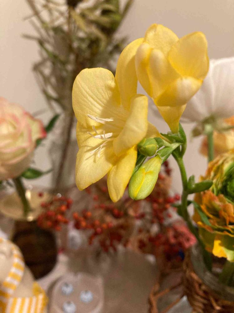バースデープレゼントでお花屋さんにいただいたフリージア