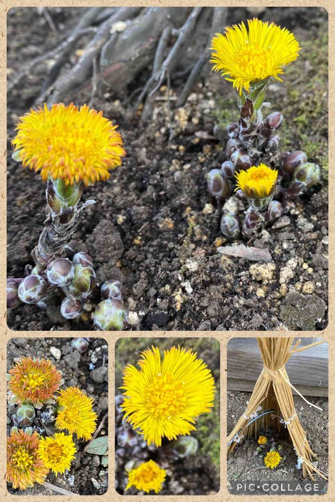 葉は フキ に似ており、花は タンポポ か フクジュソウ に似ている。