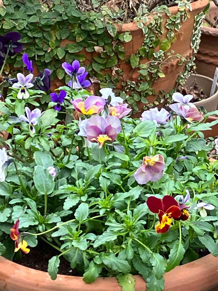12月に植えたパンジービオラの寄せ植え。