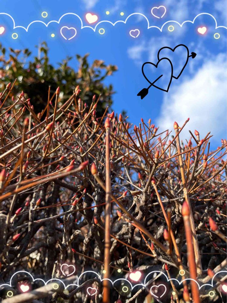 昨日はポカポカ暖かくて庭木の間をお掃除して〜ふと見上げたら〜ズッキューン💘🤣笑〜キレイにツンツンしてたよ😆