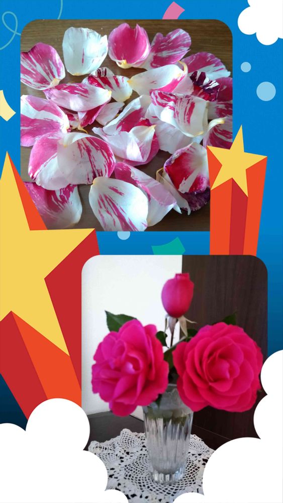 おはようございます☀久しぶりに我が家の薔薇🌹上はセンチメンタル咲かずに花びらを下はうららです🌹🌹🌹