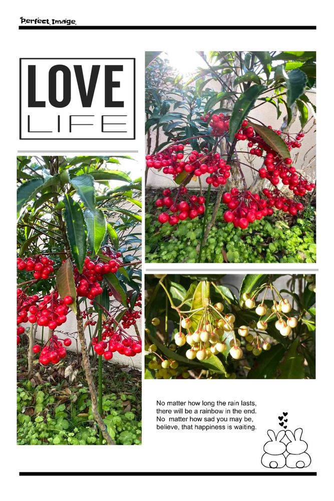 庭の紅白のマンリョウが実をつけて賑やかです。