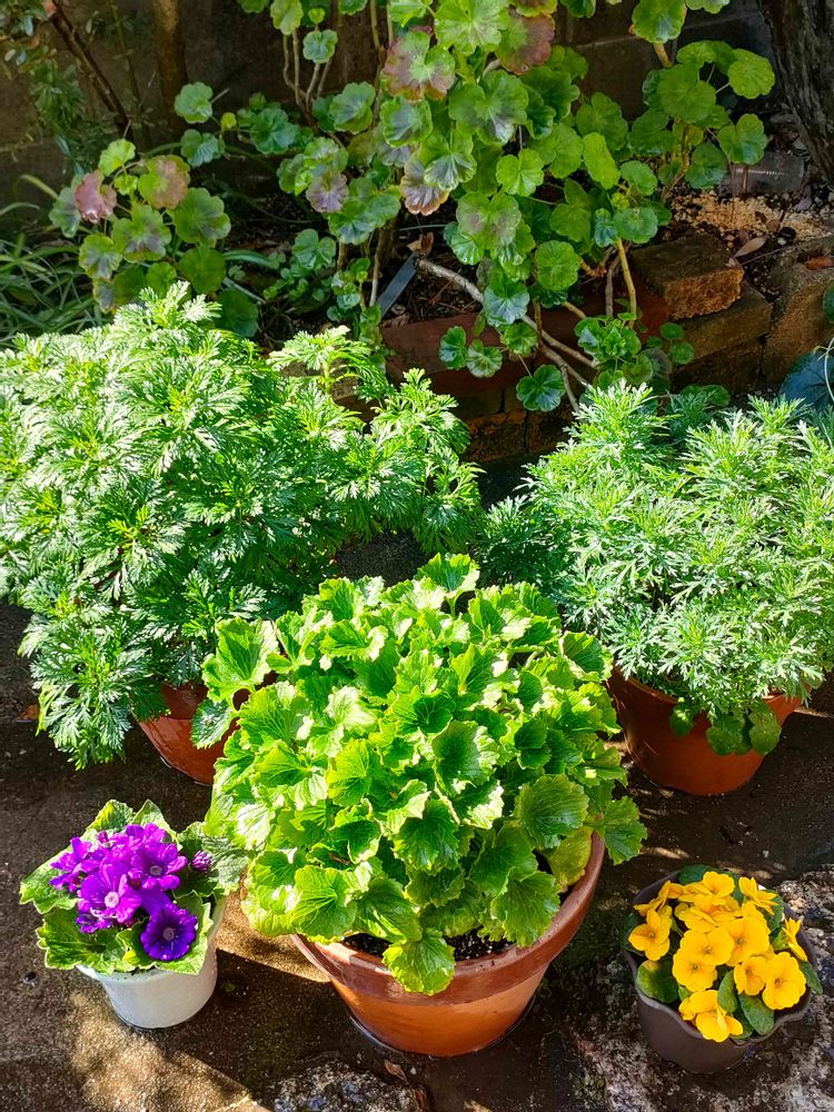 サイネリア💜のお花とプリムラジュリアン💛は大きさの比較に置きました🤗