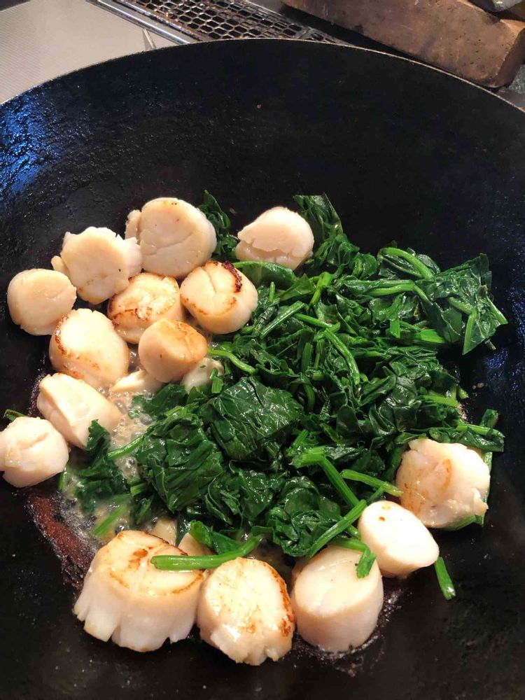 帆立貝柱と、ほうれん草、バター醤油焼き